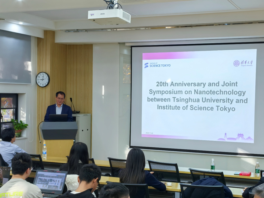 On November 22, the School of Materials Science and Engineering (SMSE) at Tsinghua University hosted the Nanomaterials Symposium to commemorate the 20th anniversary of the joint program between Tsinghua University and Institute of Science Tokyo (formerly Tokyo Institute of Technology). The symposium aimed to review the achievements of the collaboration, explore future directions, and strengthen exchanges and cooperation in the field of materials science. Attendees included Prof. NAKAJIMA Ken, director of the nanomaterials program at the Institute of Science Tokyo; professors IWAMOTO Mitsumasa, IMAOKA Takane, and SHI Ji; Prof. LIN Yuanhua, Dean of SMSE; Prof. CHEN Dongyue, Assistant Dean and director of Tsinghua University's nanomaterials program; Prof. LI Qian, Director of Graduate Affairs Team; and over ten teachers and students from SMSE. The symposium was chaired by Prof. CHEN Dongyue and Prof. SHI Ji in the first and second half-sessions, respectively.